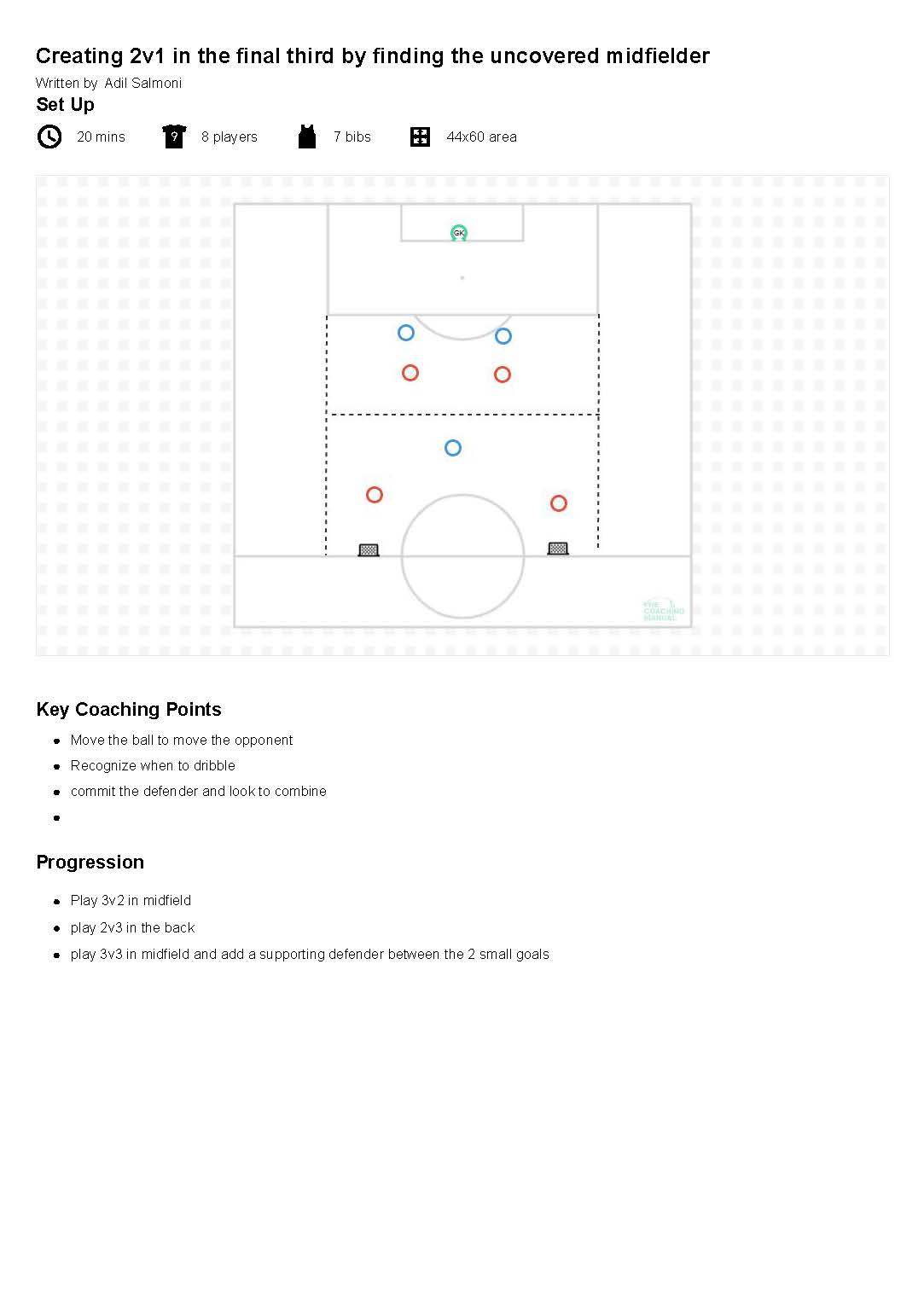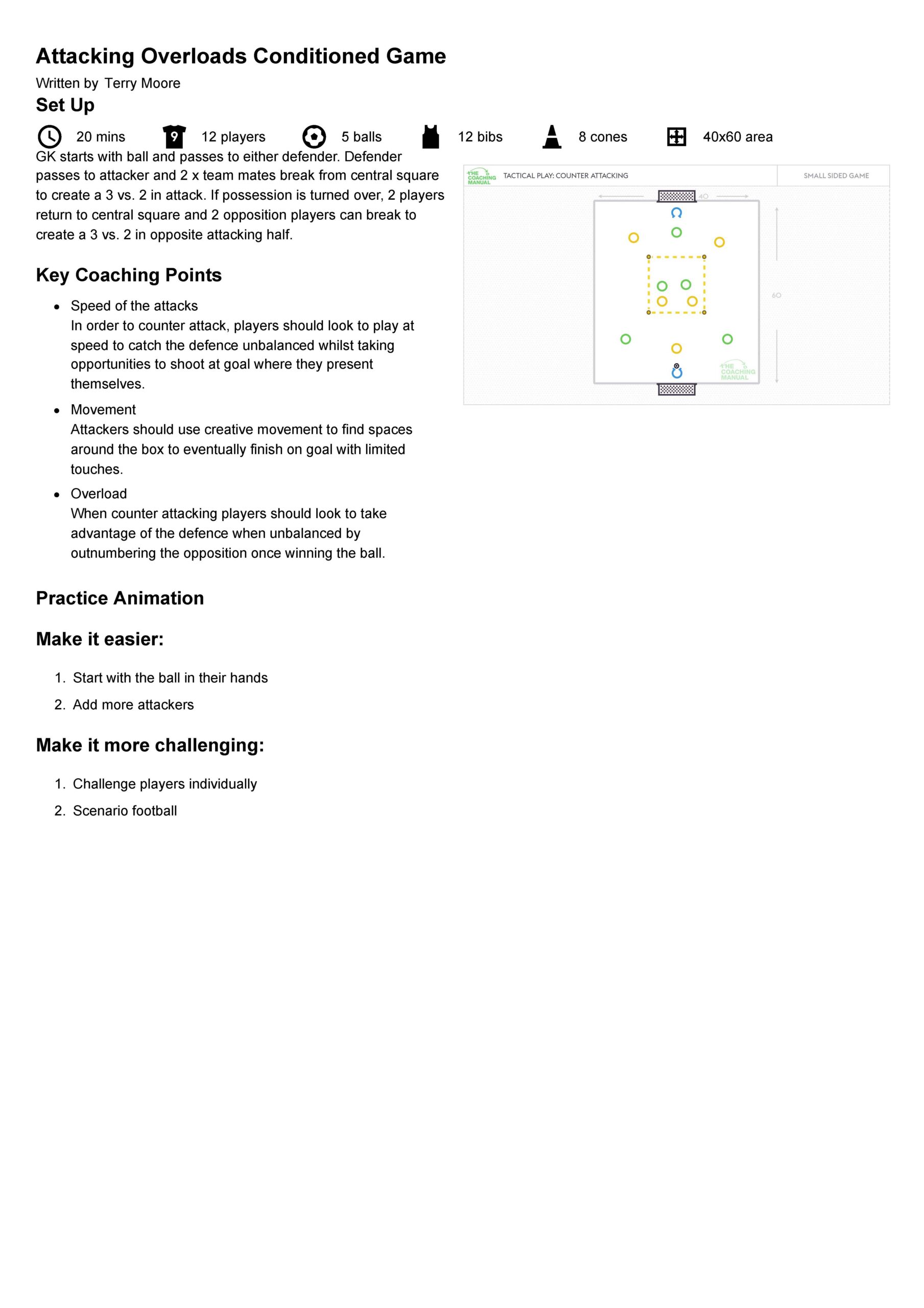 Every member of the team has a role to play in the build up. Therefore, every training session should outline the involvement and responsibilities of all field players and goalkeepers.